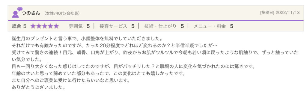 小顔整体の口コミ