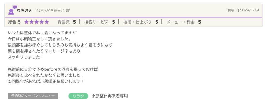 整体と小顔でお世話になっています。