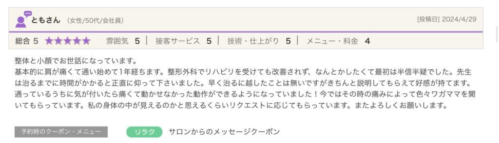 もちろん施術もとても良かったです。